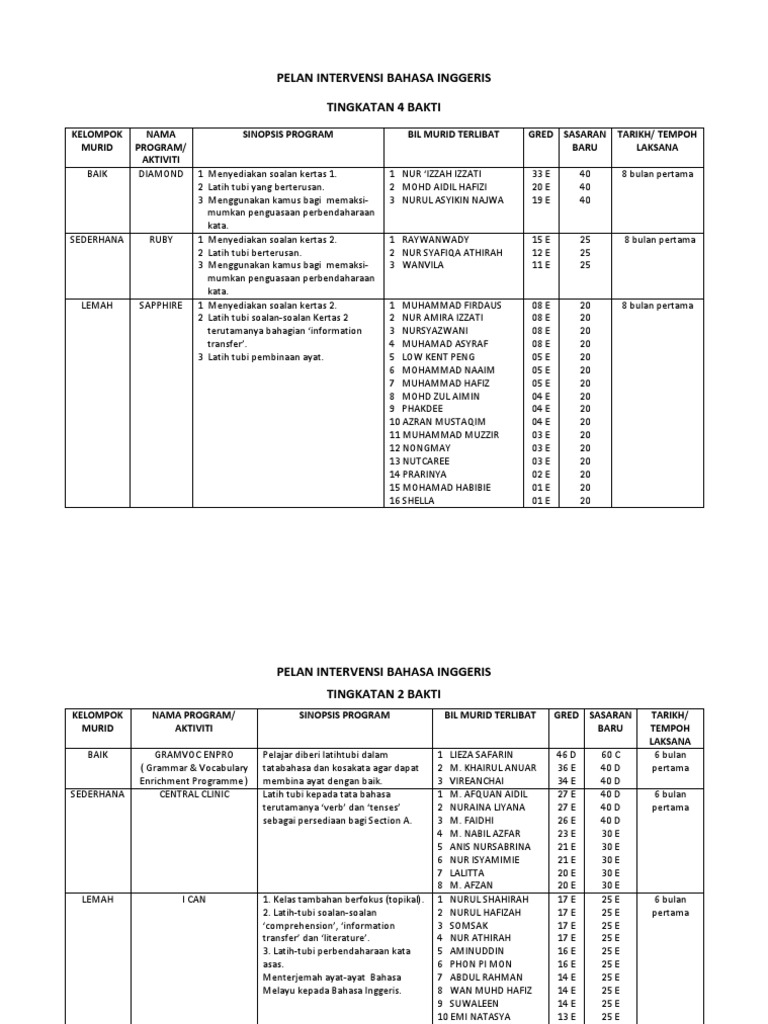 Latih tubi mengenal dan menulis huruf objektif : Program intervensi tahun enam 2016 subjek : Kertas kerja program intervensi bahasa. Talam dua muka membawa maksud. Program intervensi bi tahun enam. Intervensi bahasa inggeris tahun 4 nama aktiviti : Program intervensi smk chini timur panitia. For more information and source, see on this link : Pelan intervensi lima langkah : Program bahasa inggeris (english enrichment & enhancement) tujuan : For more information and source, see on this link : Minit panitia bm bil 4 2018. Bahasa inggeris nama guru :