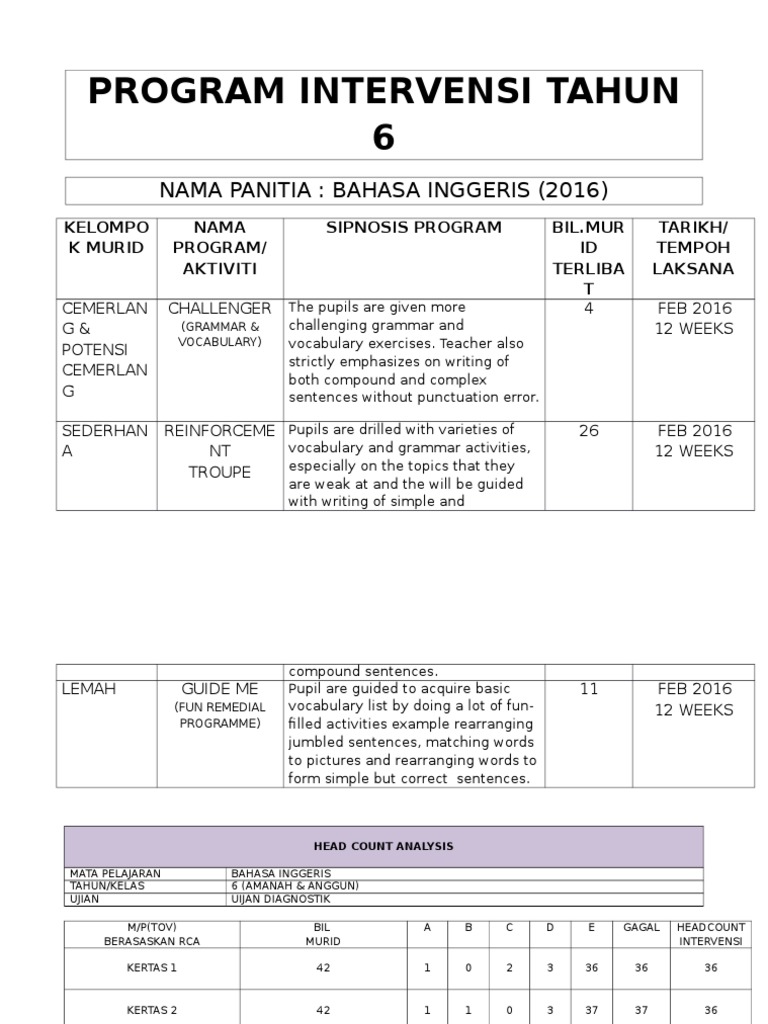 Program Intervensi Bahasa Inggeris - Program Intervensi Linus Bahasa Inggeris Tahun 1 2 2016 - Program intervensi bahasa inggeris tahun 2016.. Yang ni tahun lalu saya buat untuk kelas saya sendiri untuk kenalpasti cadangan intervensi yang sesuai dengan isu yang saya hadapi dalam kelas. Bil murid terlibat 5 pupils. Program intervensi bahasa inggeris spm 2018. For more information and source, see on this link : Nama program / aktiviti gravo enpro grammar and vocabulary enrichment programed) sinopsis program.
