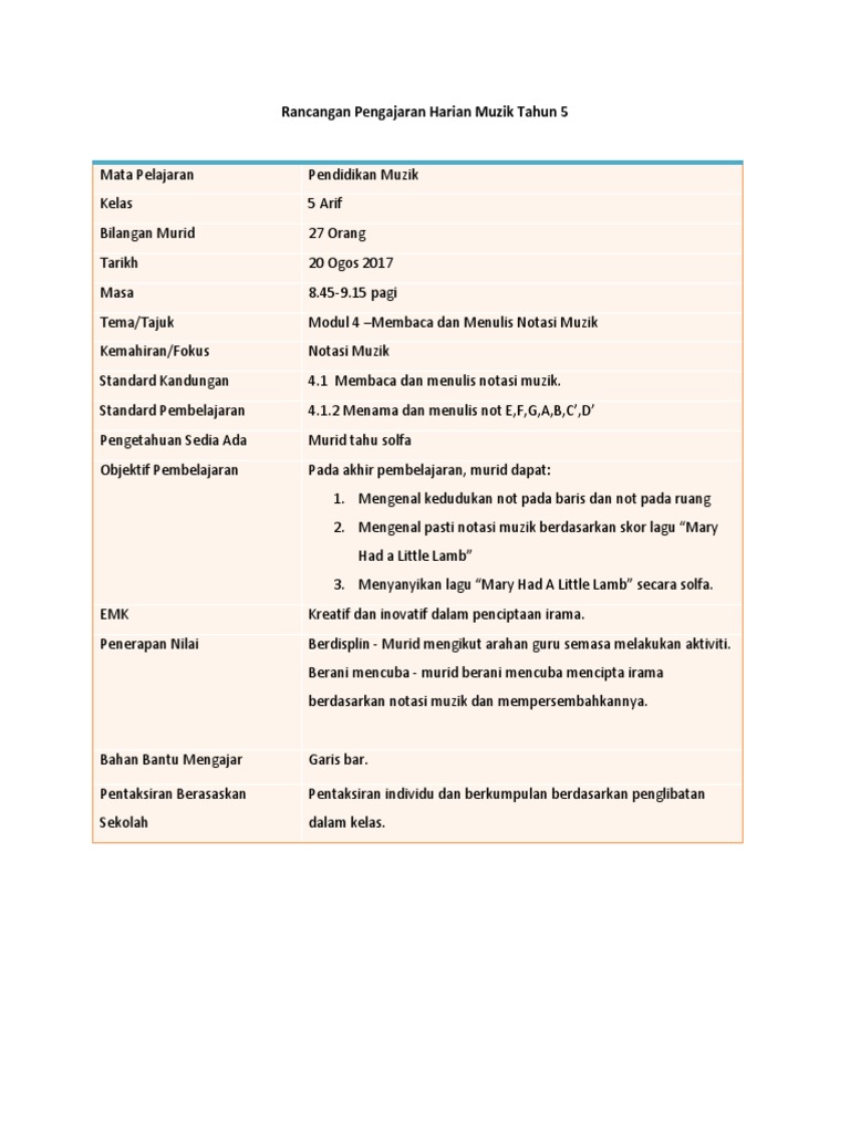 Rph Muzik Tahun 4 2018 / Contoh Rph Muzik Tahun 3 Kssr - (tamat pada 19 julai 2021)